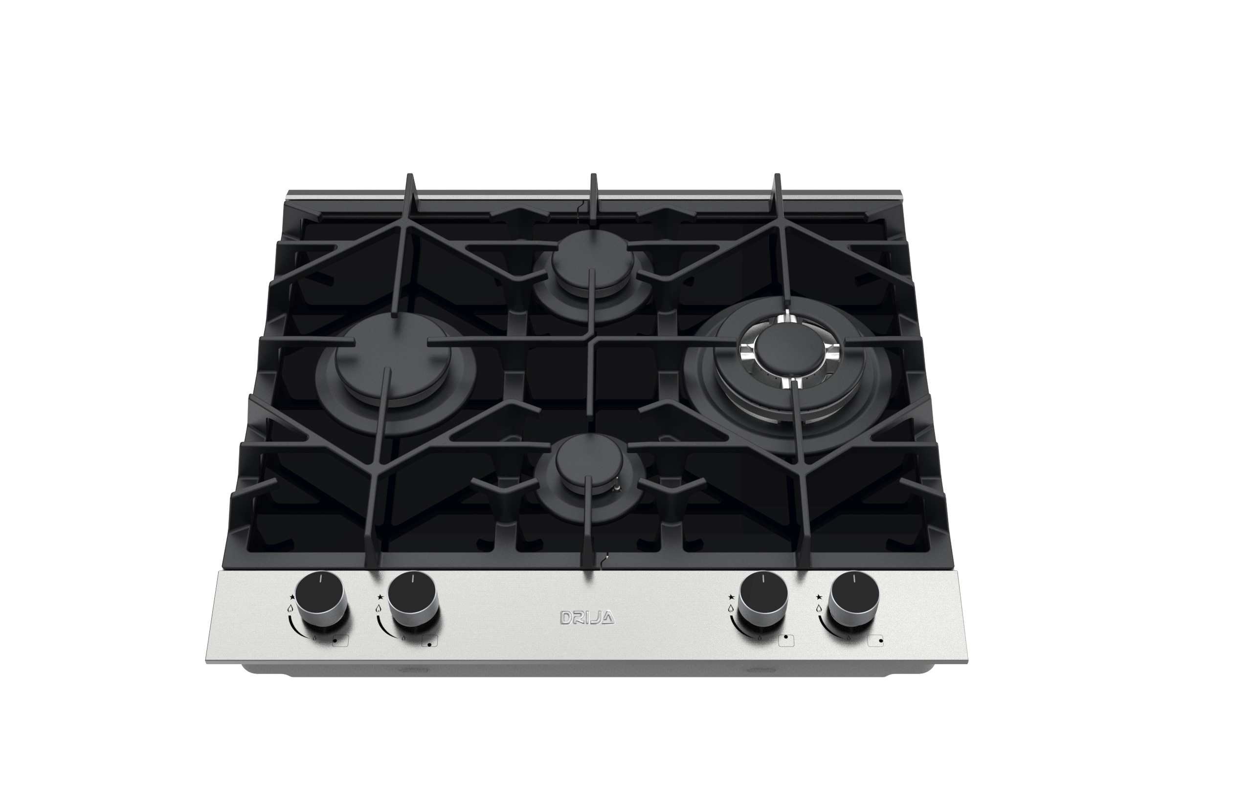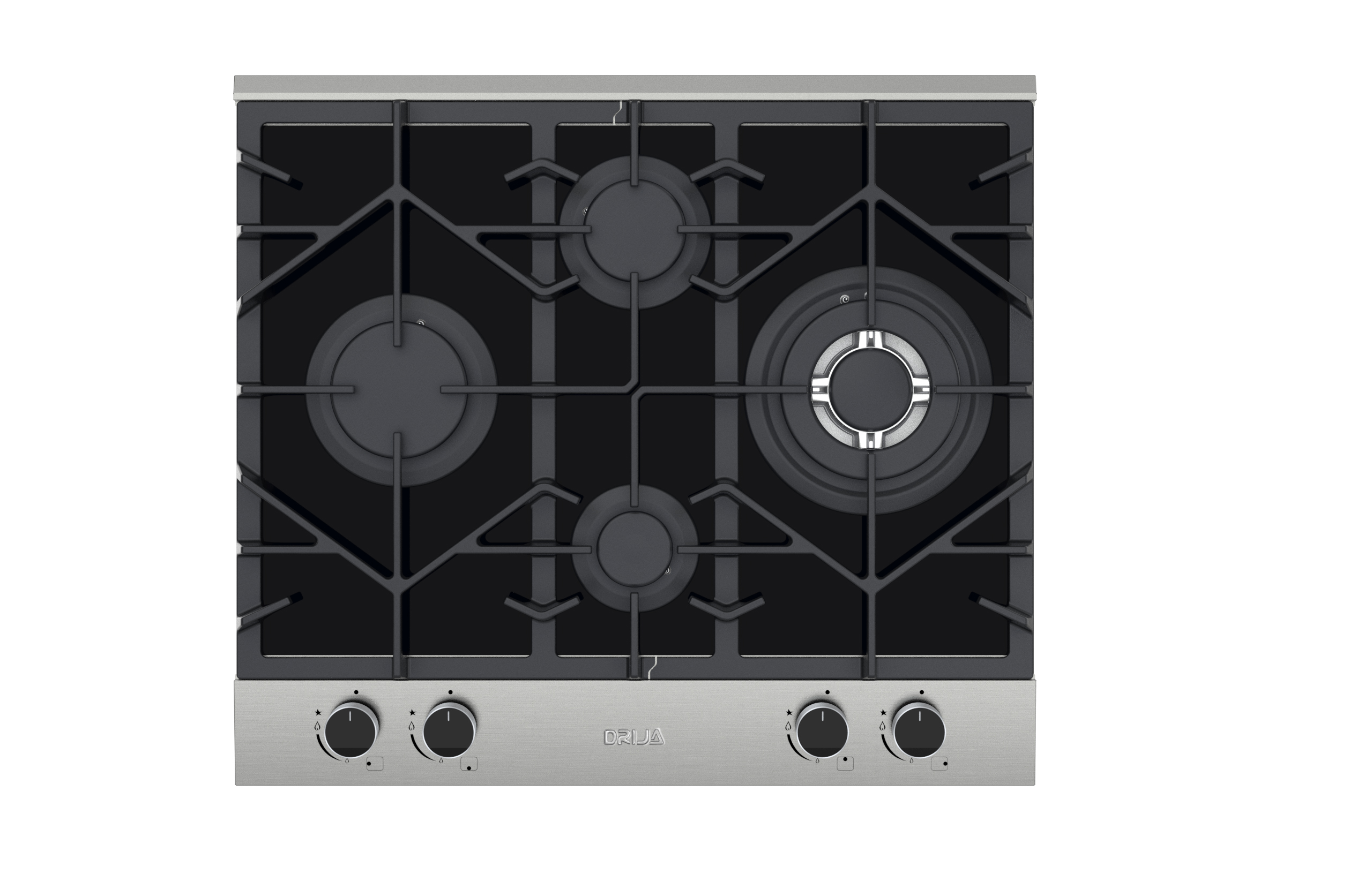 Estufa a gas vitroceramica-acero, 58.4 cm, 4 quemadores drija, válvulas de seguridad, potencia 8.6kw, 1 porta wok, perillas de lujo, parrilla de hierro colado, encendido eléctrico, 110v/240v. incluye plancha de hierro fundido.