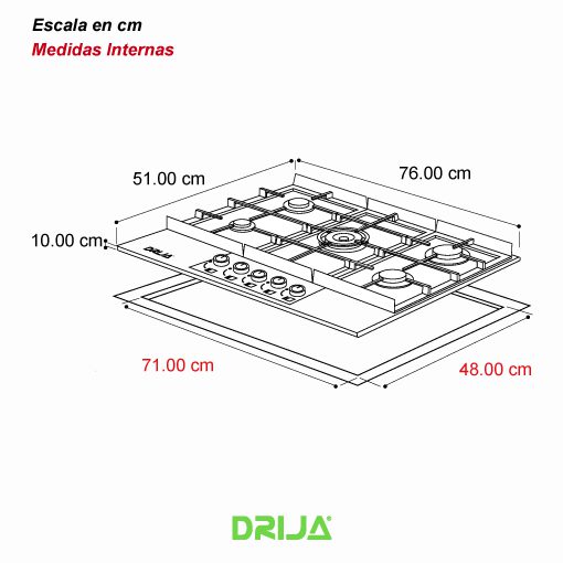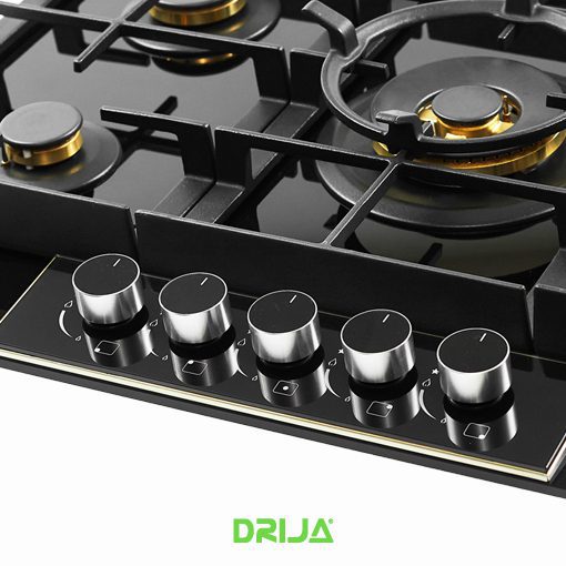 Estufa a gas vitroceramica 76 cm, perillas de lujo y panel de vidrio con acero , 5 quemadores de cobre sabaf® 10 años de garantia, válvulas de seguridad,potencia 11,6kw, parrilla de hierro colado,1 porta wok, encendido electrico, voltaje 110v/240v