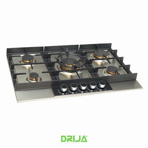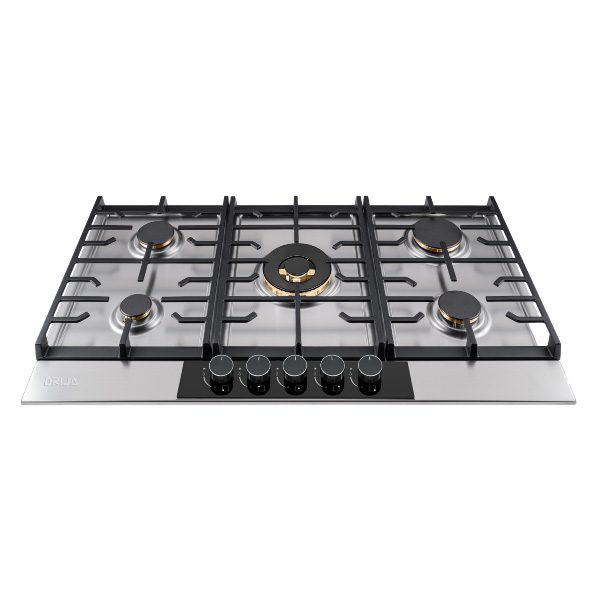 Estufa a gas acero inoxidable (304), 76 cm, perillas de lujo y panel de vidrio con acero ,5 quemadores de cobre sabaf® 10 años de garantia, válvulas de seguridad, potencia 11,6kw, parrillas de hierro colado,1 porta wok, encendido electrico, voltaje de 110v/240v