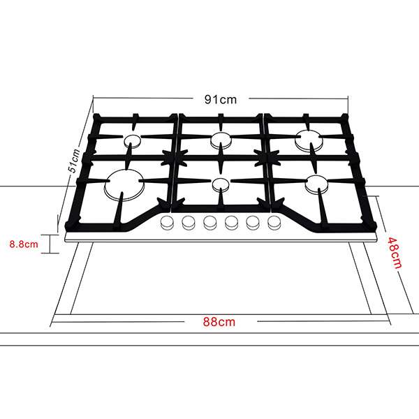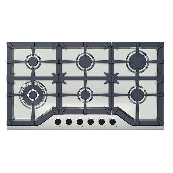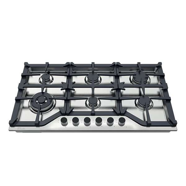 Estufa a gas acero inoxidable 304. 91 cm. 6 quemadores italiano (sabaf®) 10 anos de garantia. Valvulas de seguridad. Potencia 12. 6kw. Perillas de lujo. Parrilla de hierro colado. Encendido electrico. Voltaje 110. 220v. Frecuencia 50. 60hz. Incluye 1 plancha de herro fundido.